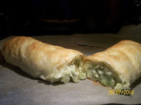 Then I rolled it up, brushed with milk and pricked it with a fork (did that last bit two minutes after putting it into the oven when I actually read the packaging so that's how I discovered that the light in my oven actually isn't bad for taking photos with).