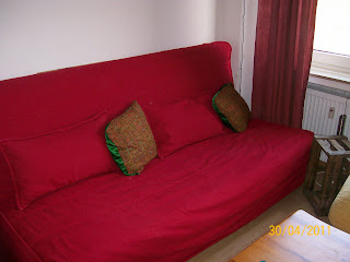 Went to the launderette, stopping in the cellar to get the sofa cover (which was off course at the very bottom of the piles of stuff) and rearrange things there a bit better. I even thought to stop at the bank to get change but of course the launderette is very high-tech these days and will not only take notes in the machine, it will give you change. Unfortunately the XXL machine isn't all that XX so I had to do two loads - at 9 euro each, that is expensive. It's a good thing the cover comes apart into two pieces. I was able to do the summer duvet in one of the ordinary machines, which are still bigger than a normal domestic one. That's 3.50. I did try washing the smaller section of the sofa cover in a smaller machine but it really wasn't clean when it came out so I put it into the bigger one. A waste of 3.50 but good to know for future reference.